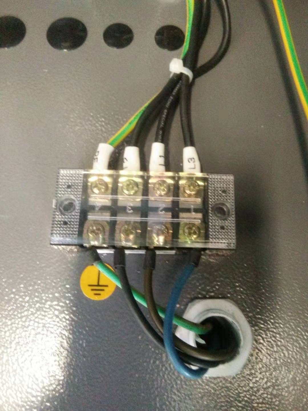 2、數(shù)控機床的通電:機床一般使用三根動力線380V,一根接地保護線,要注意電纜線的平方數(shù),在機床說明書的線路圖中都有明確標注。例:CAK6130h要求單根2.5平方毫米,電壓380V±10%,如果電壓太低將會導致主軸旋轉(zhuǎn)不穩(wěn)定。